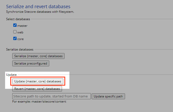 Make sure that the master and core databases are selected and click the Update {master, core} database button.